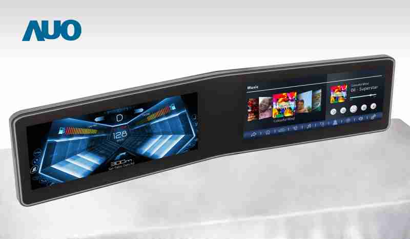 开云电子 V 型曲面驾驶舱显示器,,采全贴合拼接仪表板及中控台显示屏 |